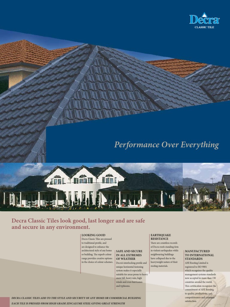 Classic tiles can add to the style and security of any home or commercial designed for homes that need a bolder, stronger looking roof, decra® classic tiles mix edgy. Decra products in stock include: Decra tile®, offering the beauty and style of mediterranean tile and the lightweight components of stone coated steel; Decra classic tiles have a stone granular finish which is ceramically colour glazed with coloured silicates lightweight roofing tiles are environmentally friendly. Decra classic coastal eaves tiles are part of the decra classic roof sheet tiling system that comes with an impressive set of features making it one of the most competitive tiling systems on the market.
